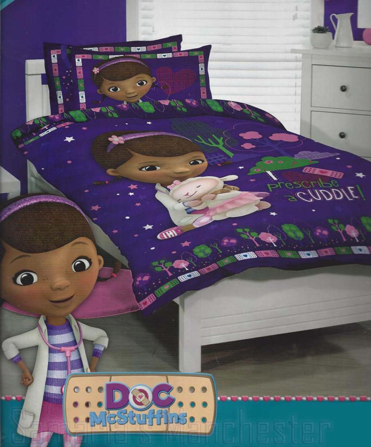 Doc Mcstuffins Bedding Set | Shop doc mcstuffins blankets, bed sets, comforters, pillows & pillowcases and other bedding. Doc mcstuffins smiles and hugs twin comforter, flat sheet, fitted sheet, pillowcase, and tote bag. My daughter loves her new doc mcstuffins room. Doc mcstuffins comforter and sheet set: Doc mcstuffins bed set sizes like twin bedding doc mcstuffins bedroom: